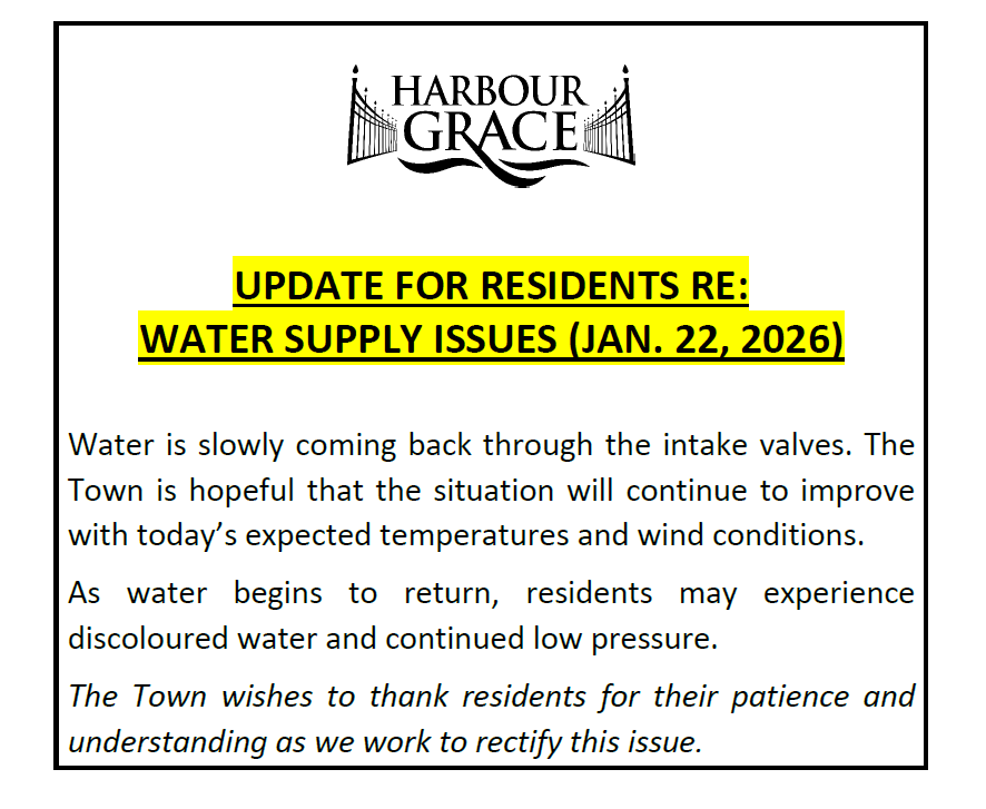 Update for Residents RE: Water Supply Issues (Thursday, Jan. 22, 2026, 9:10 a.m.)