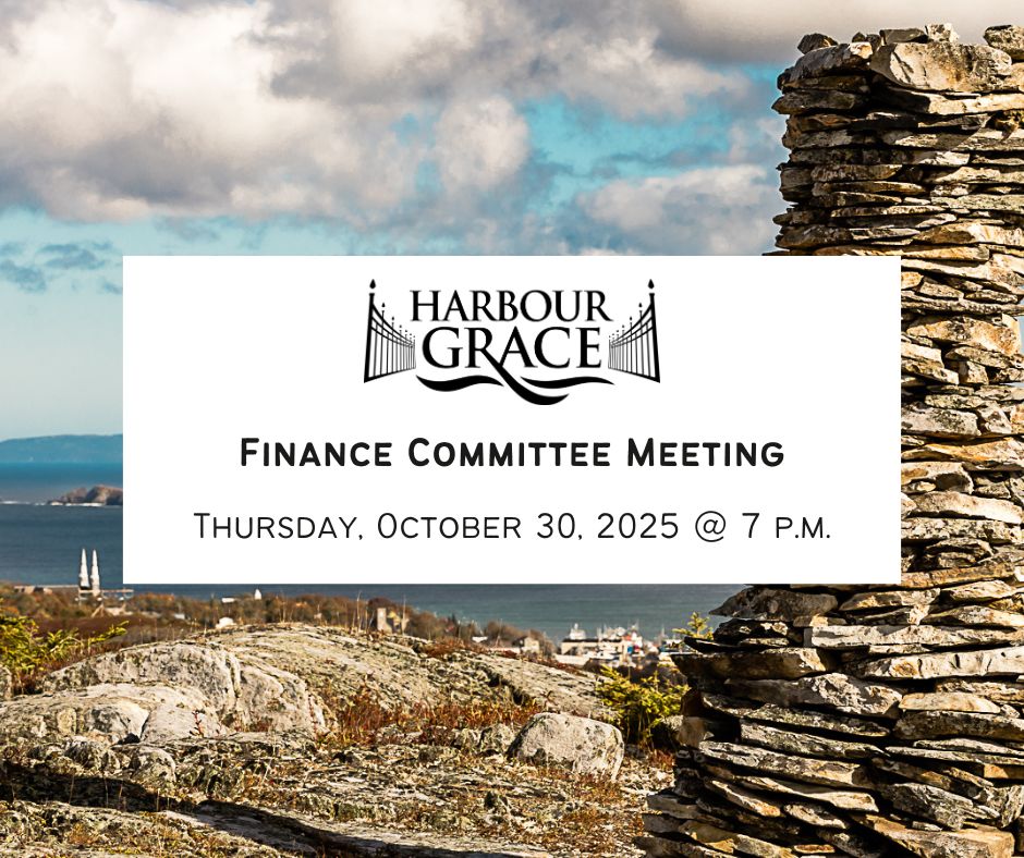 The Town of Harbour Grace’s Finance Committee will have a meeting on Thursday, October 30, 2025, at 7 p.m. This public may attend this meeting in-person at the Town Hall, 112 Water Street, Harbour Grace.