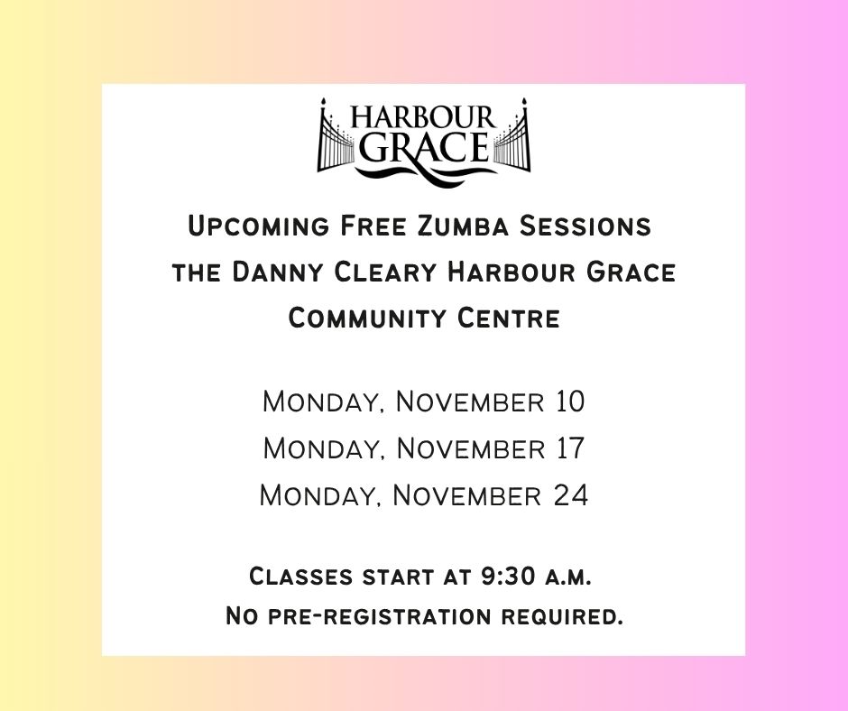 The Danny Cleary Harbour Grace Community Centre will be offering some more free access Zumba sessions this month with Rosalie Morrissey.