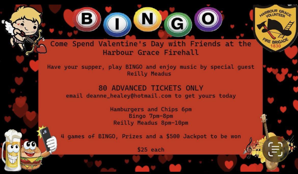 Valentine’s Event at the Harbour Grace Volunteer Fire Brigade’s Social Building